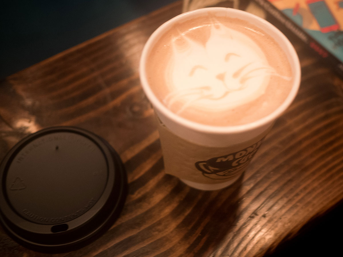 Kotimatkalla päätimme käydä katsastamassa aiemmin tapaamamme suomalaisia lauluja laulaneen rouvan mainostaman kahvilan täällä Sugar Hillissä (The Monkey Cup) ja nyt kyllä osuimme ihan kultasuoneen! Erinomainen kahvi, äärimmäisen ystävällinen palvelu ja kiva tunnelma, vaikka kahvila ei juuri kioskia isompi ollut. Barista jopa otti Hemulin huomioon ja keitti kaakaon hieman viileämpään veteen kuin minulle. Ja kaiken kruunasi kaakaoiden päälle taiteillut maitokissa ja suklaa-apina. Tuonne menemme uudestaan vielä ennen lähtöä! Aiemminkin olemme matkoillamme huomanneet, että uusi elämä lähtee aina keriytymään auki tietyistä mukavista paikoista. On löydettävä hyvä kauppa, viihtyisä kahvila, kirjasto, levykauppa ja se kantabaari, jossa saa kuunnella elävää musiikkia.
